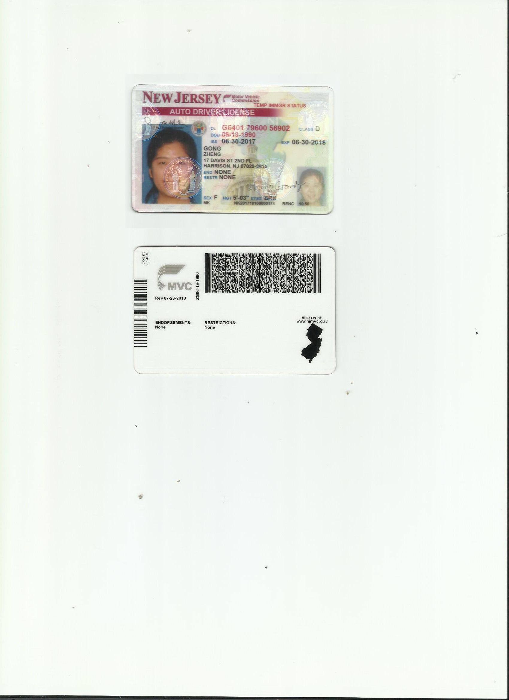 美國新澤西駕照翻譯模版 咸陽翻譯 政府指定咸陽翻譯 公安 車管所