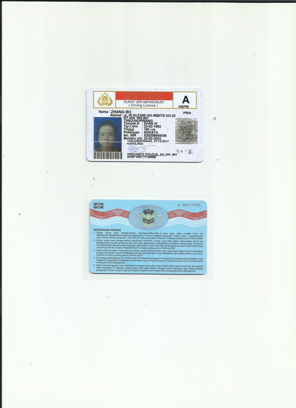 印尼駕照翻譯模版 咸陽翻譯 政府指定咸陽翻譯 公安 車管所